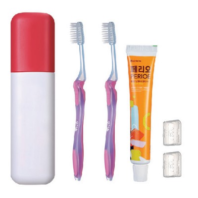 | 기타사항 | (종이케이스별도 100원) •구성 : 케이스(고정형)+칫솔2개 +페리오치약50g+캡2개 •Size : 51 x 32 x 210mm •재질 : 케이스-HDPE / 칫솔-PP ※칼라인쇄시 100원 추가 |