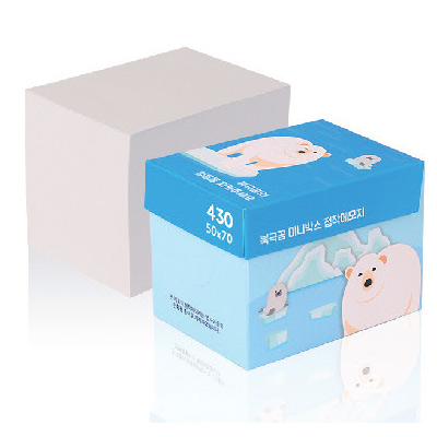 | 기타사항 | •53 x 73 x 53mm •내지 50 x 70mm, 총430매 •친환경 종이 내지 •박스 컬러인쇄, 내지 먹1도 •기본수량 100개 |