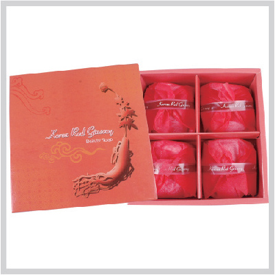 | 기타사항 | •중량 : 100g(수분포함)x 4p •7x 2.7cm(비누) 17x17x5.5cm (4p박스) •소듐팔메이트,홍삼,글리세린 |
